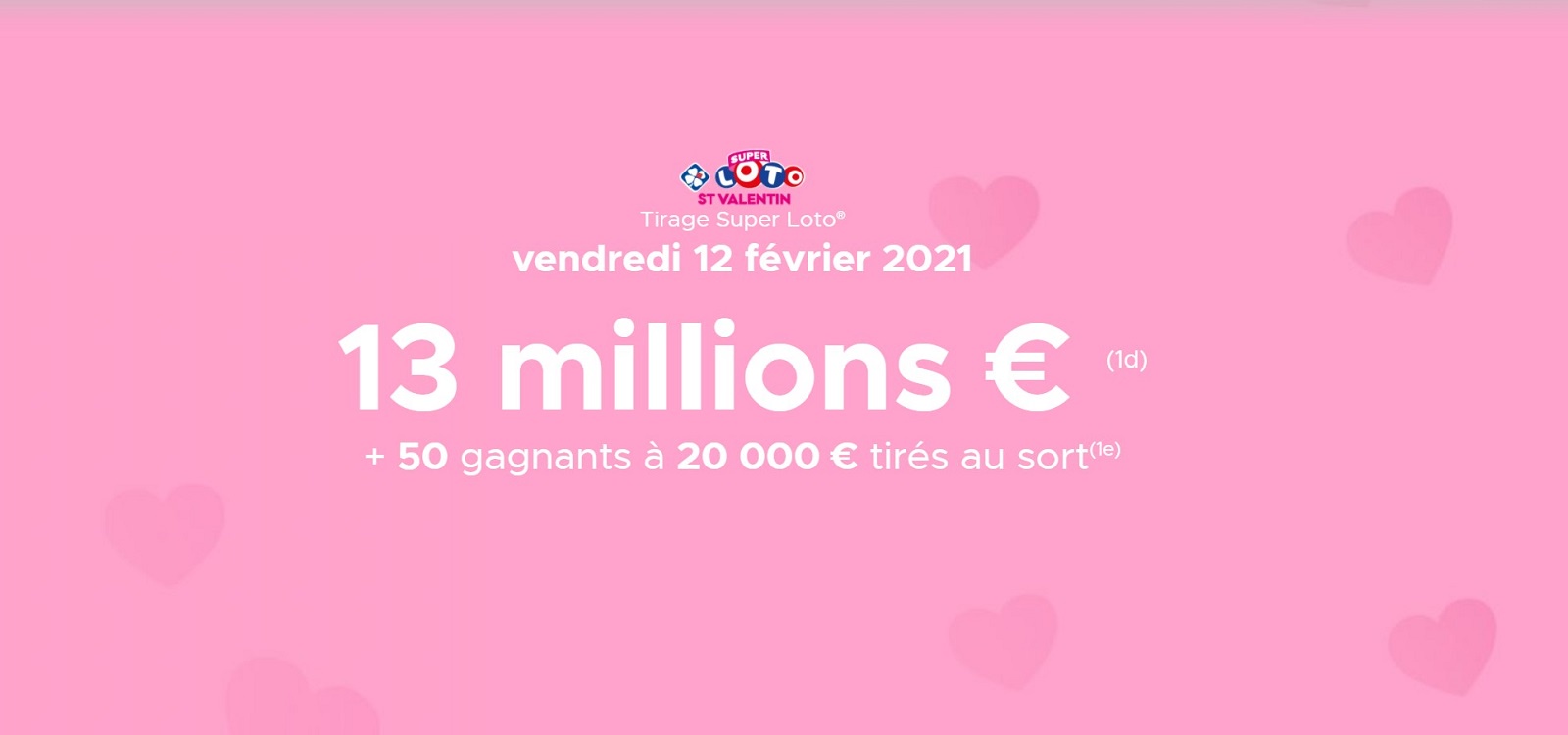 En plus de cette super cagnotte, la fdj offrira 20 000 € à 50 joueurs tirés pour participer au super tirage du super loto vendredi 13, faites ce qui suit : Avec 5 gagnants lors du super loto du vendredi 13 février et un en mars, retrouvez l'ensemble des gagnants super loto de 2015 en infographie ici ! Le tirage était le suivant :